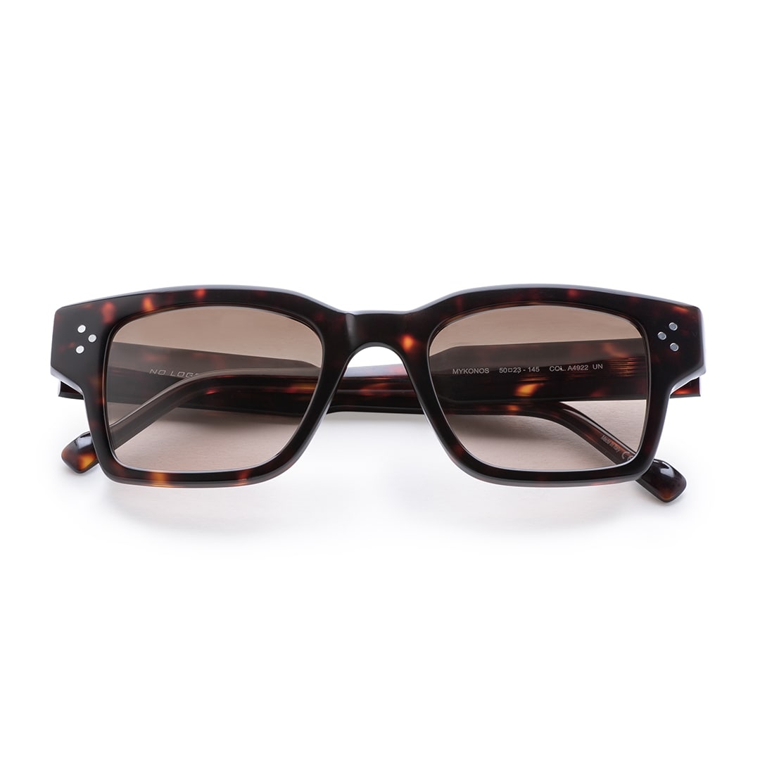 La montatura Mykonos è in acetato. Il ponte misura 23 mm e la lunghezza delle aste è di 145 mm.
